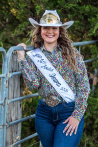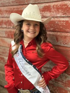 Ellah Baker, 2025 Cherry County Rodeo Princess. I own/owned a stick horse named Sparkles. It was a gift. My first rodeo I attended was The Trenton Harvest Festival Rodeo at age three with my parents and brother. My favorite candy bar is Snickers. My favorite barrel racer is Amberley Snyder because despite her disability she continues to follow her dreams and be courageous! My dream horse trailer would have a lot of tack room, air conditioning for those hot summer days, living quarters, and a good amount of space for the horses! My favorite western pieces of clothing are jewelry and my belt buckles! I love my belt buckles cause each of them tells a different story and I can match my jewelry to anything I’m wearing to accessorize my outfit!