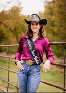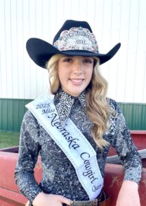 Kennedy Meinberg Miss Nebraska Cowgirl Queen. I owned a stick horse named Noodles. It was a gift from my mom. My first rodeo I attended was at Lancaster Event Center and I was 8. I attended with my mom, dad, and brother. My favorite candy bar is 3 musketeers. My favorite barrel racer is Amberley Snyder because she never let anything stop her. My dream horse trailer would have air conditioning!! My favorite western pieces of clothing are trophy buckles and jeans!”