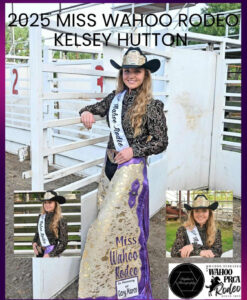 Kelsey Hutton, Miss Wahoo Rodeo 2025. I owned a stick horse named Buckaroo; it was a gift from my grandmother. He was fast, gritty, and bucked every once in a while, - hence the name! My first rodeo I attended was the Wahoo Saddle Club PRCA Rodeo, at age 15 with my family. I am so honored to now be able to proudly represent this rodeo! My favorite candy bar is a KitKat. My favorite barrel racer is Emily Beisel. Like me, she is not from a rodeo family but has found a passion for the sport. Her signature leg-lifts and athletic riding style are so fun to watch! My dream horse trailer would be a 3-horse weekender, with a decent living quarters and room for my big gelding, Pilot, in the back. My favorite western piece of clothing would be my trusty Ariat boots, which have carried me through years of hard work, long days, and make me look just a couple inches taller.