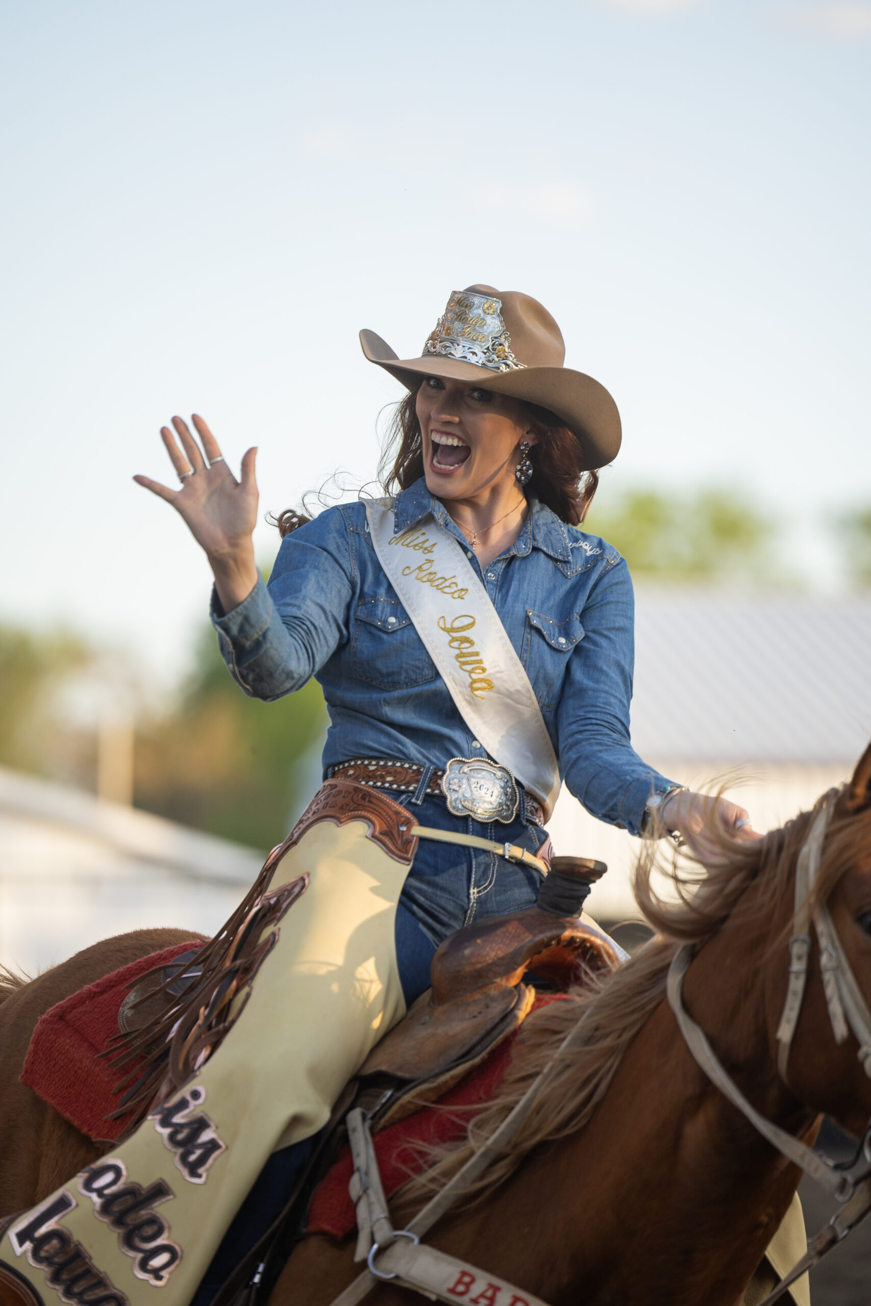 Tangier Shrine Clowns and visiting rodeo queens greet fans at the inaugural Tangier Shrine PRCA Rodeo in Springfield, Neb. May 10, 2024. Copyright Gretchen Kirchmann